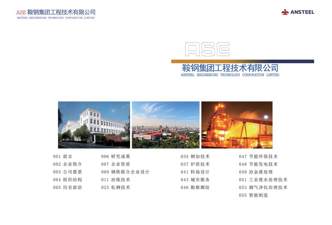 鞍鋼集團工程技術(shù)有限公司(ASE)地處國家AAAAA級風(fēng)景名勝區(qū)—千山腳下,是原鞍鋼集團設(shè)計研究院改制的國有控股混合所有制企業(yè),至今已有60多年的發(fā)展歷史,被譽為“中國冶金設(shè)計隊伍的搖籃”,公司注冊資本6.49億元。具有工程設(shè)計、工程咨詢、勘察測繪等8項國家甲級資質(zhì)和總承包資格,連續(xù)多年被遼寧省認定為高新技術(shù)企業(yè),是國家“雙百行動”和“混改”雙試點企業(yè),是全國勘察設(shè)計行業(yè)百強企業(yè),2021年排名位列第81名,入選國企混改典型案例,位居前列。